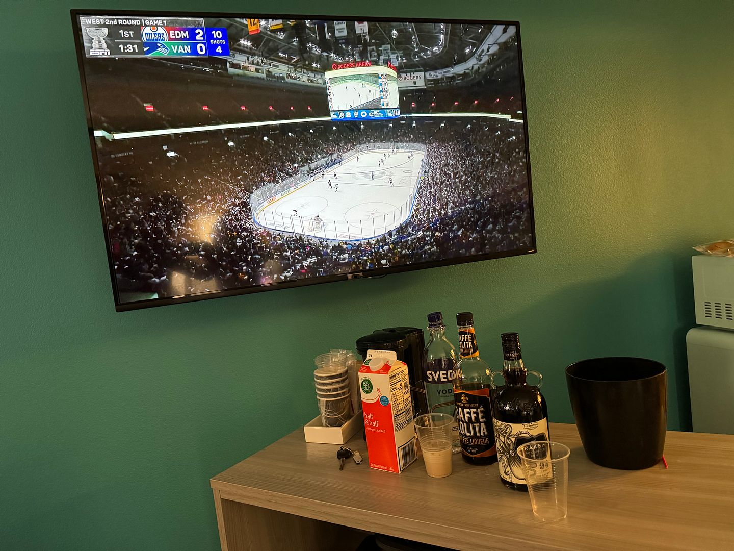 Turned our room into a bar....White Russians and Hockey playoffs!