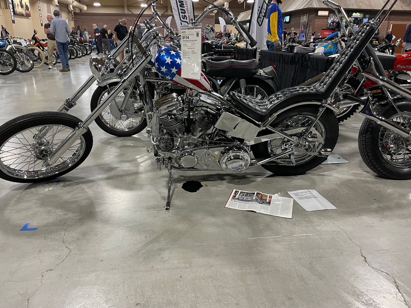 Ok you guys already know I'm not very mature.....I couldn't resist bringing the fake oil spill we made up a few years ago, to put under bikes at the auction....lol....I put it under this Captain America replica...and when I did it I noticed that it was already leaking some oil...lol