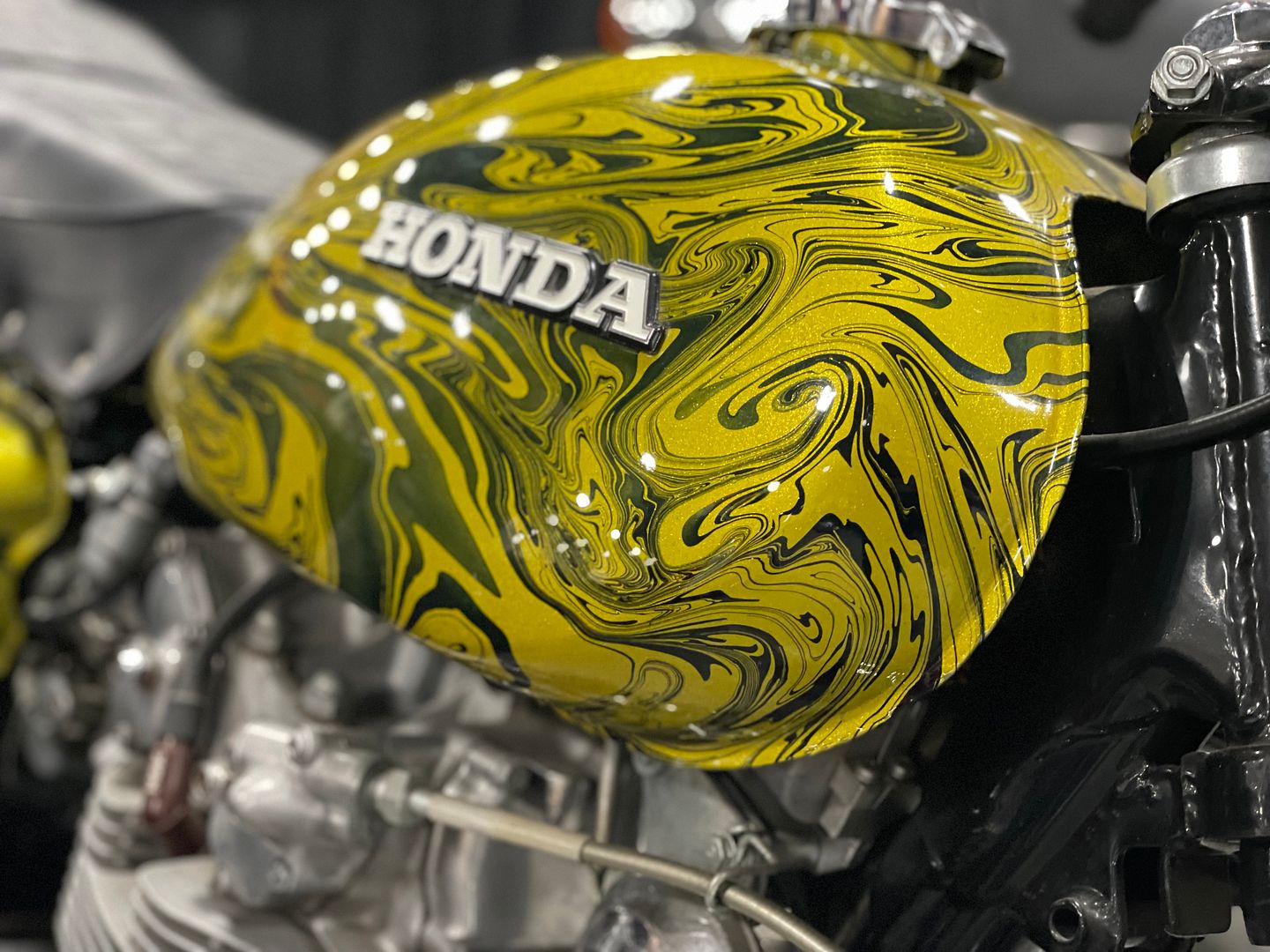 And a cooley that went for $21,500....not original paint...rumour that it was a plain 1000....it was advertised as 640 miles...but why would it need repainting? Also noticed that the mirrors had two different black finishes on them.....hmmm