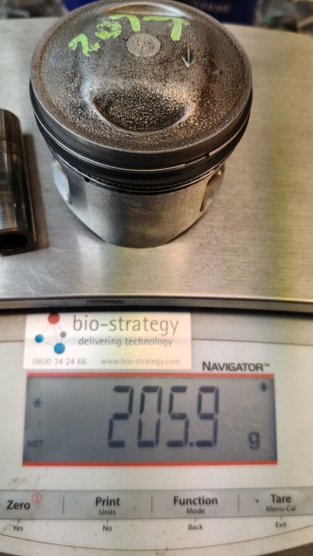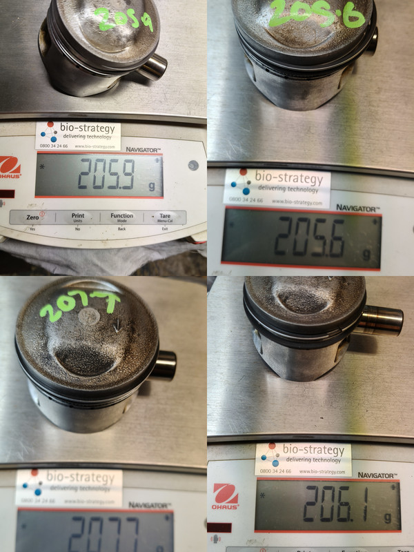 Got the scales out and weighed the piston assemblies. 3 of the were in 0.5 of a gram, but I e was close to 2 grams heavier. I relieved metal around the pin bosses, until it was within half a gram.