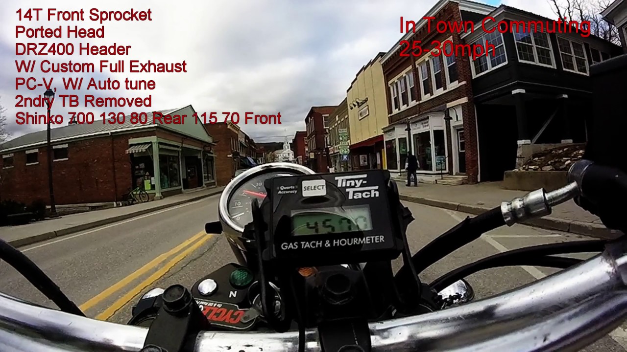 Sounds like a success!I'm guessing I've unlocked 4hp if I'm lucky. HAHA But yes it's noticeable on a 18hp bike. Since the bike is setup for on/off road (scrambler) I definitely added more mid range grunt, especially with the DRZ400 Mid pipe, porting and port matching the head for the DRZ pipe and PC-V tuning. Bike is great on the back,dirt,fire,access, class-4 roads with loads more pull from5-8K RPM vs stock. Also way more pull for exiting turns vs stock in the twisty stuff 40-55mph. 0-60 is in the 8-9 second range (dependent on incline and wind