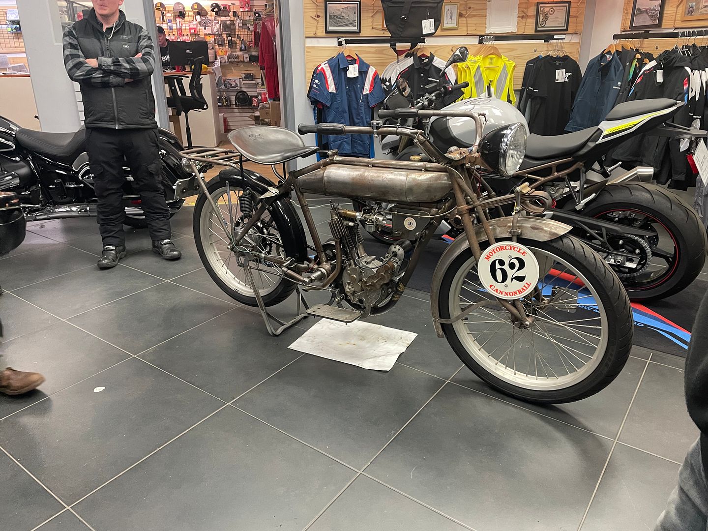 And check this out a 1910 Indian that they took on trade from a guy in Victoria that completed the Cannonball on it! New York to California