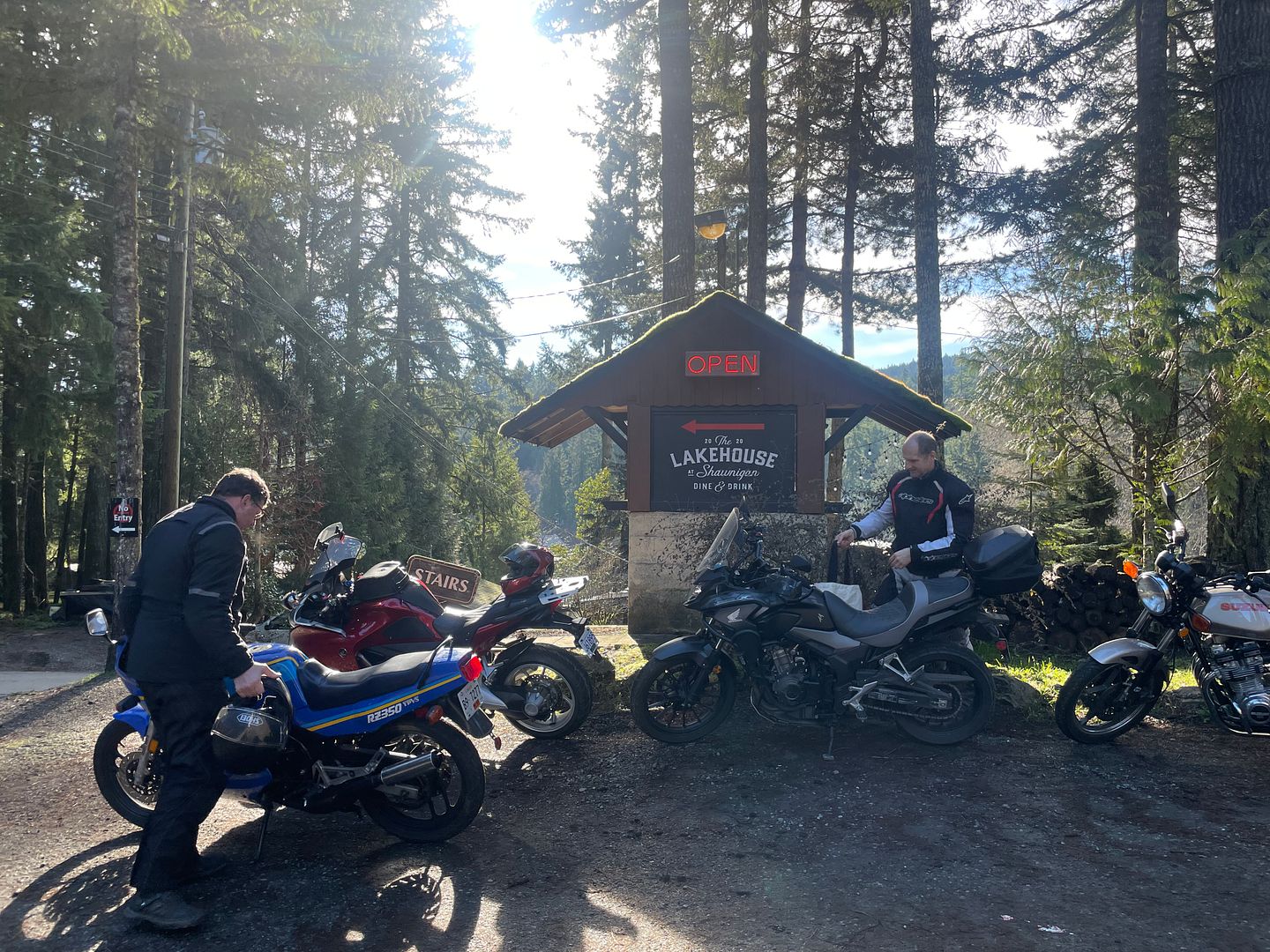 42degF, had rained some overnight (washing roads), so took GK out. Had little ride around town to some scenes, and stopp at coffee shop (in record store) and then 50 degF and ride out of town and around for a while. Was nice to just be cruising, enjoying what curves that could be found, enjoying being out and not feeling like in a struggle against the cold, just enjpoying the ride.