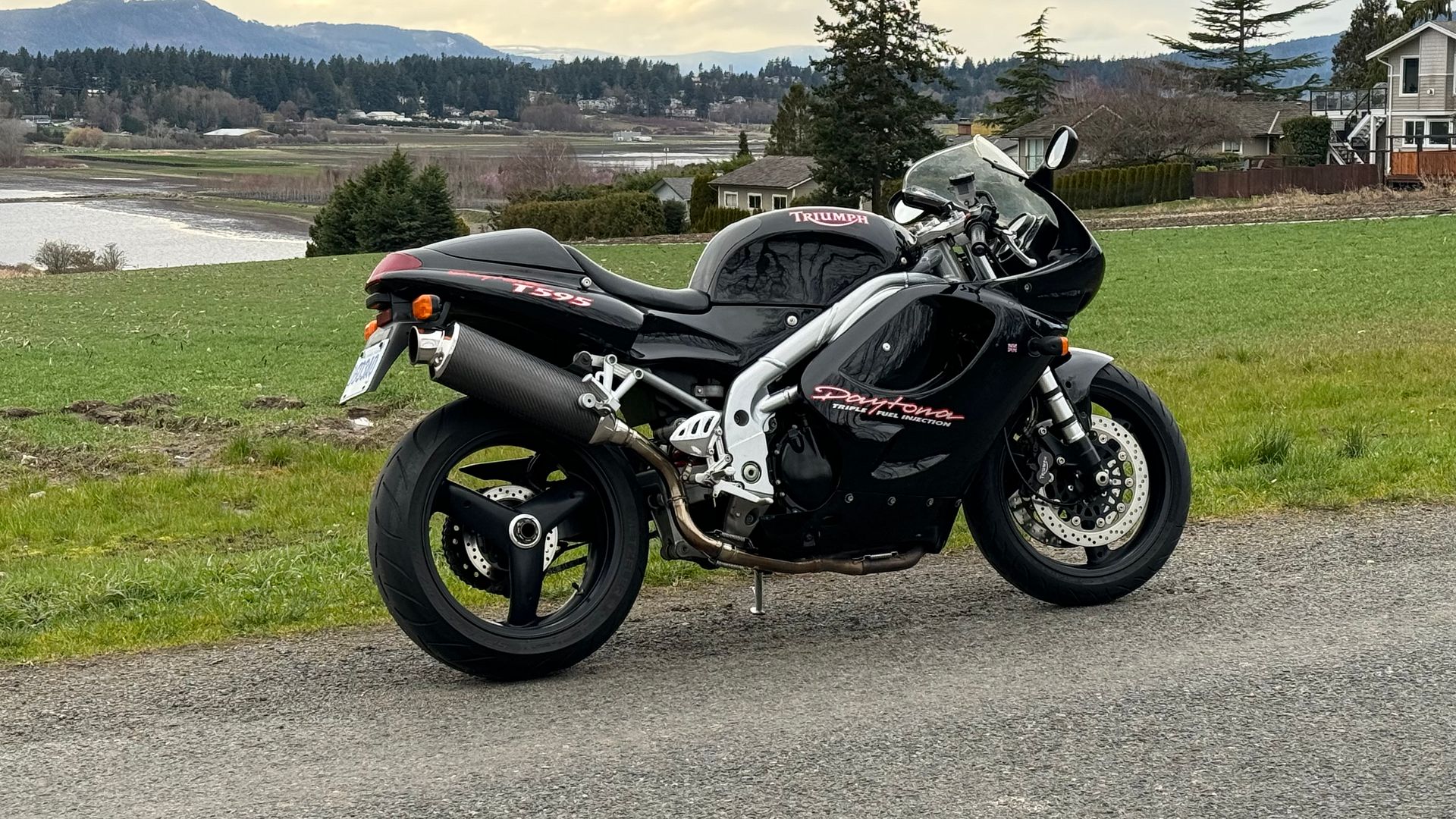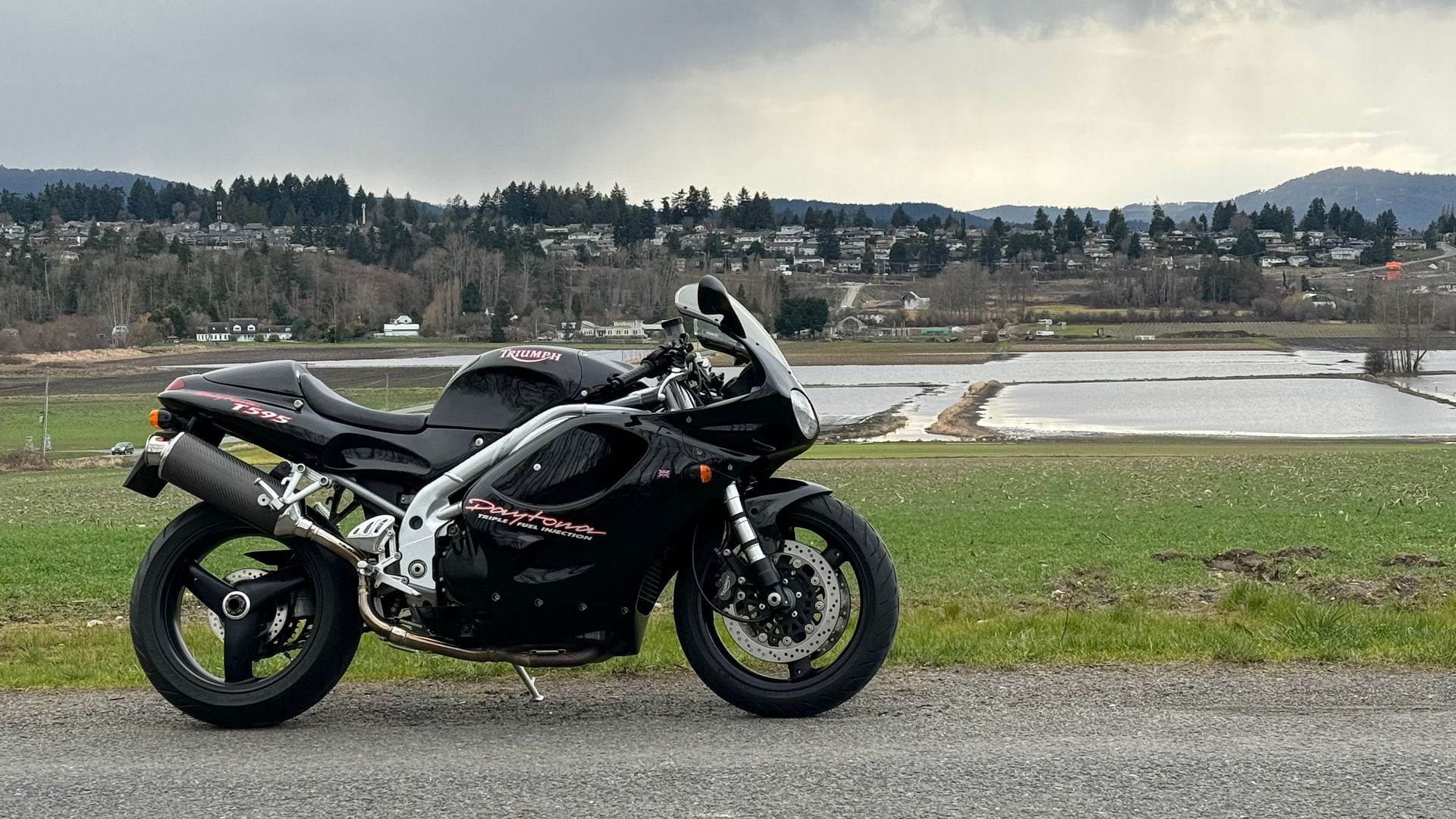 Got a plate for the Triumph yesterday and took my very first ride on it....wow....that sound! Handles extremely well. I certainly would not want to ride it in the city much as I don't think my wrists could handle it....but on the highway it was surprisingly comfortable.