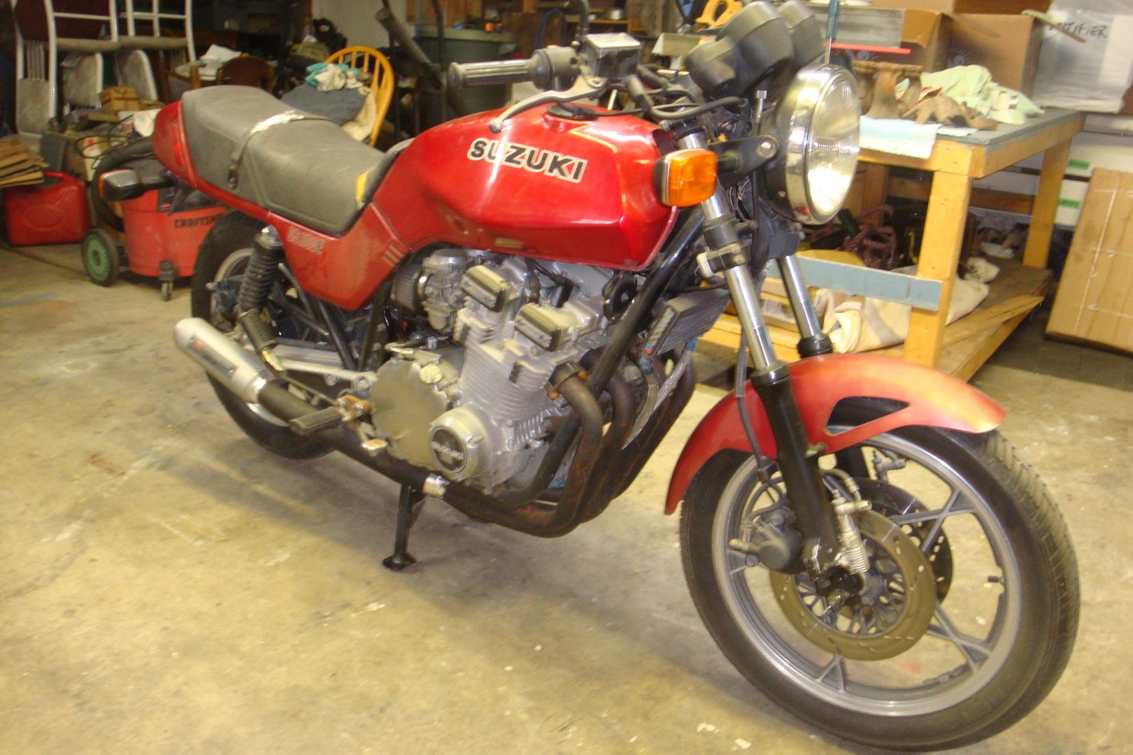 1982 GS1100E V&H "SS" exhaust, APE pods, 1150 oil cooler, 140 speedo, 99.3 rear wheel HP, black engine, '83 red