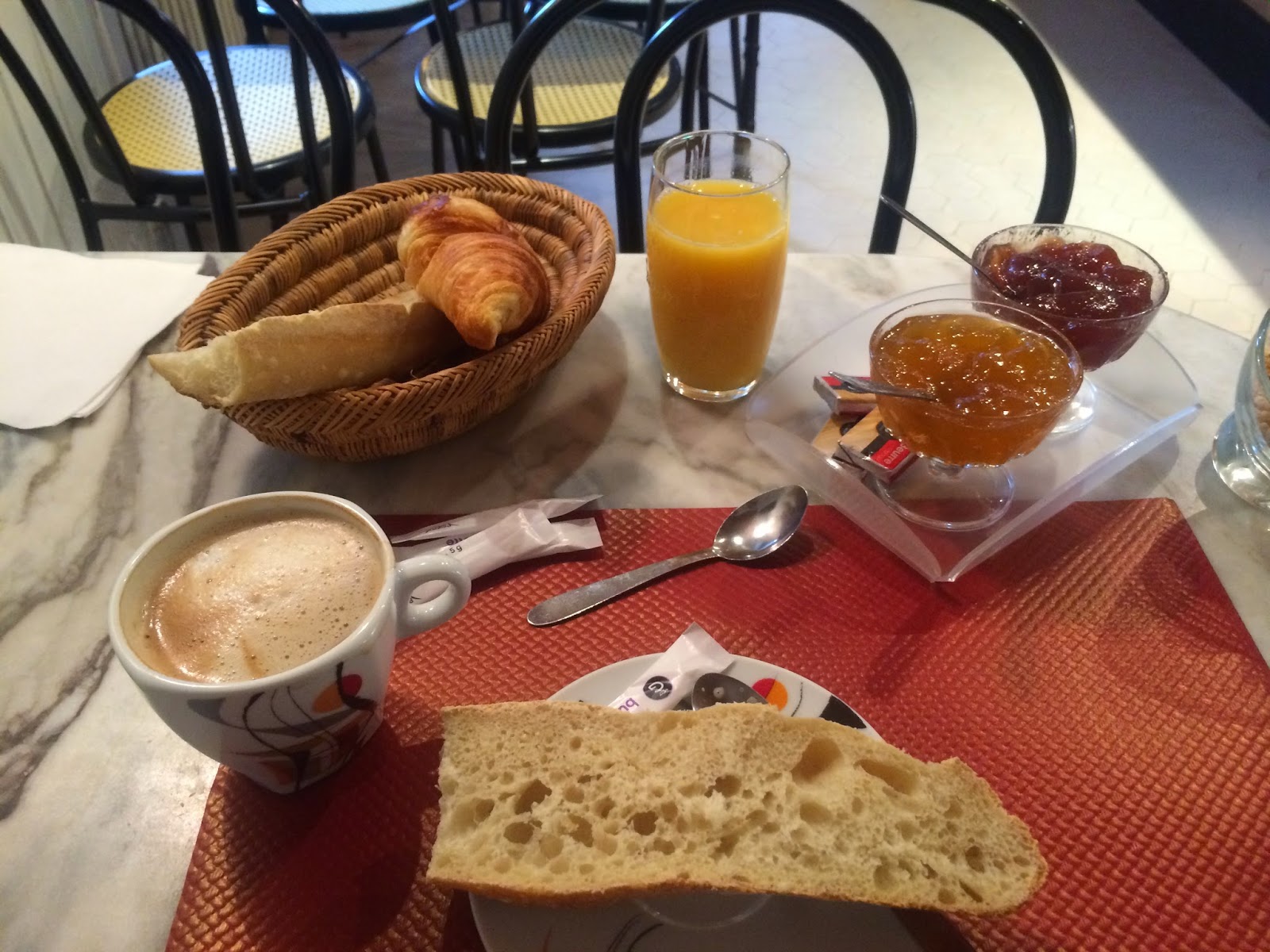 The next morning was picture postcard. Snow capped mountains greeted me after I had had a fabulous “only in France” French breakfast and set off on my way again.