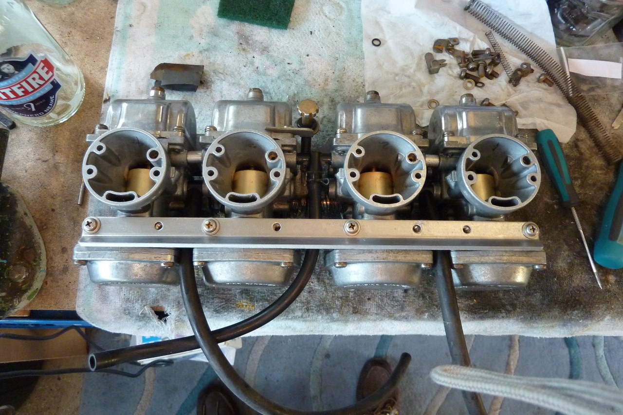 There are 282 components in my set of 4 Mikuni BS34SS Constant Velocity carburettors and I have had every single one of them in my fingers. From the carburettor body right down to the little washer and rubber O ring from the pilot screw. Each component is critical to the operation of the unit and built to withstand the rigours of their workplace environment. Component failures are thankfully rare. The rubber parts perish over time and the needle valve springs lose their spring which can lead to overflowing float bowls. But the main causes of problems are from contaminants in the fuel or from fuel putrefaction due to long periods of inactivity. There are small pipes, holes and passageways with minute apertures that can easily get clogged and cause a disproportionate degree of malfunction. Clean carburettors are the first place to start when refurbishing or overhauling one of these engines.