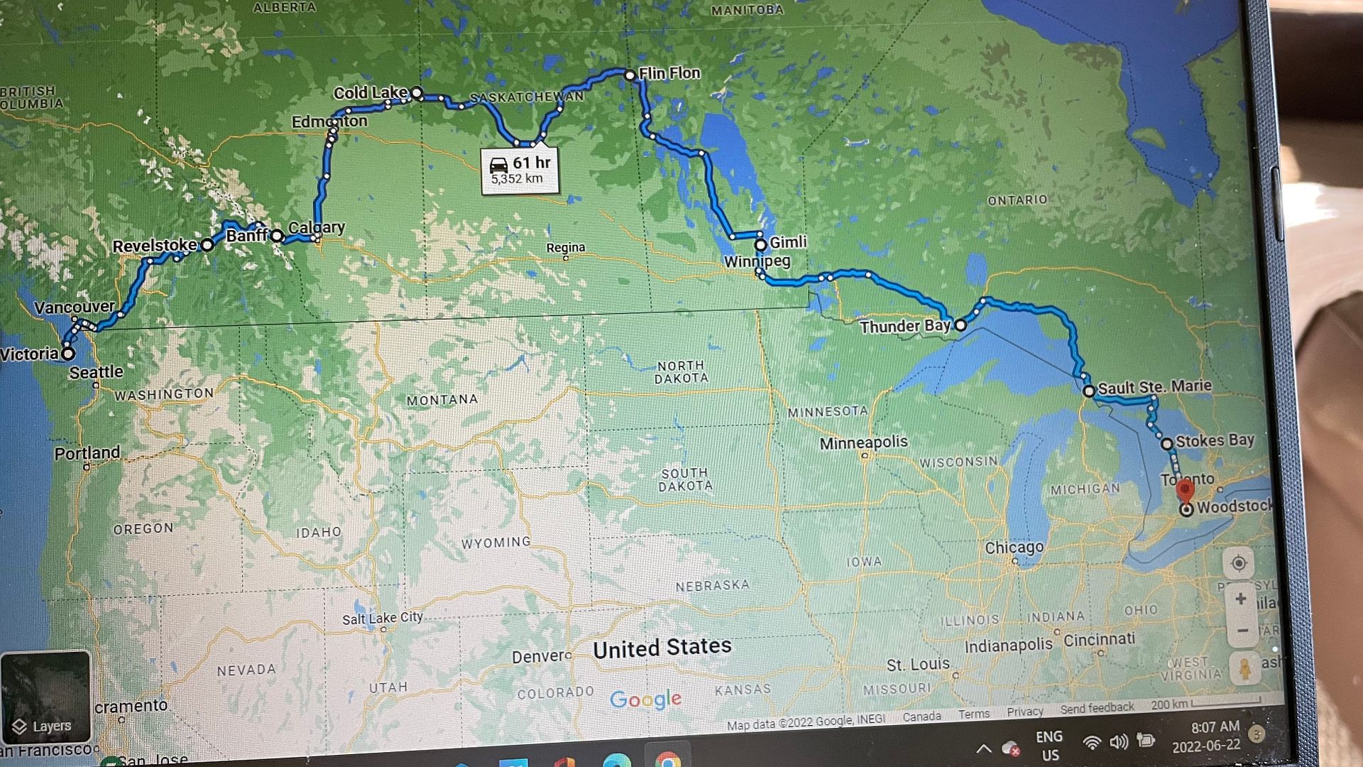 We are taking a more northern route there and it will take longer but much more interesting than the Prairies