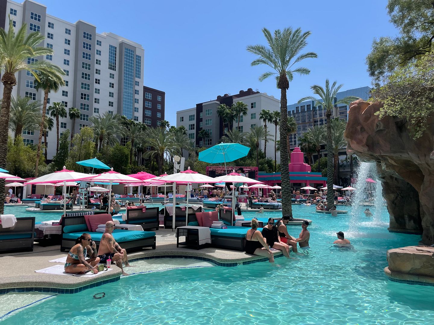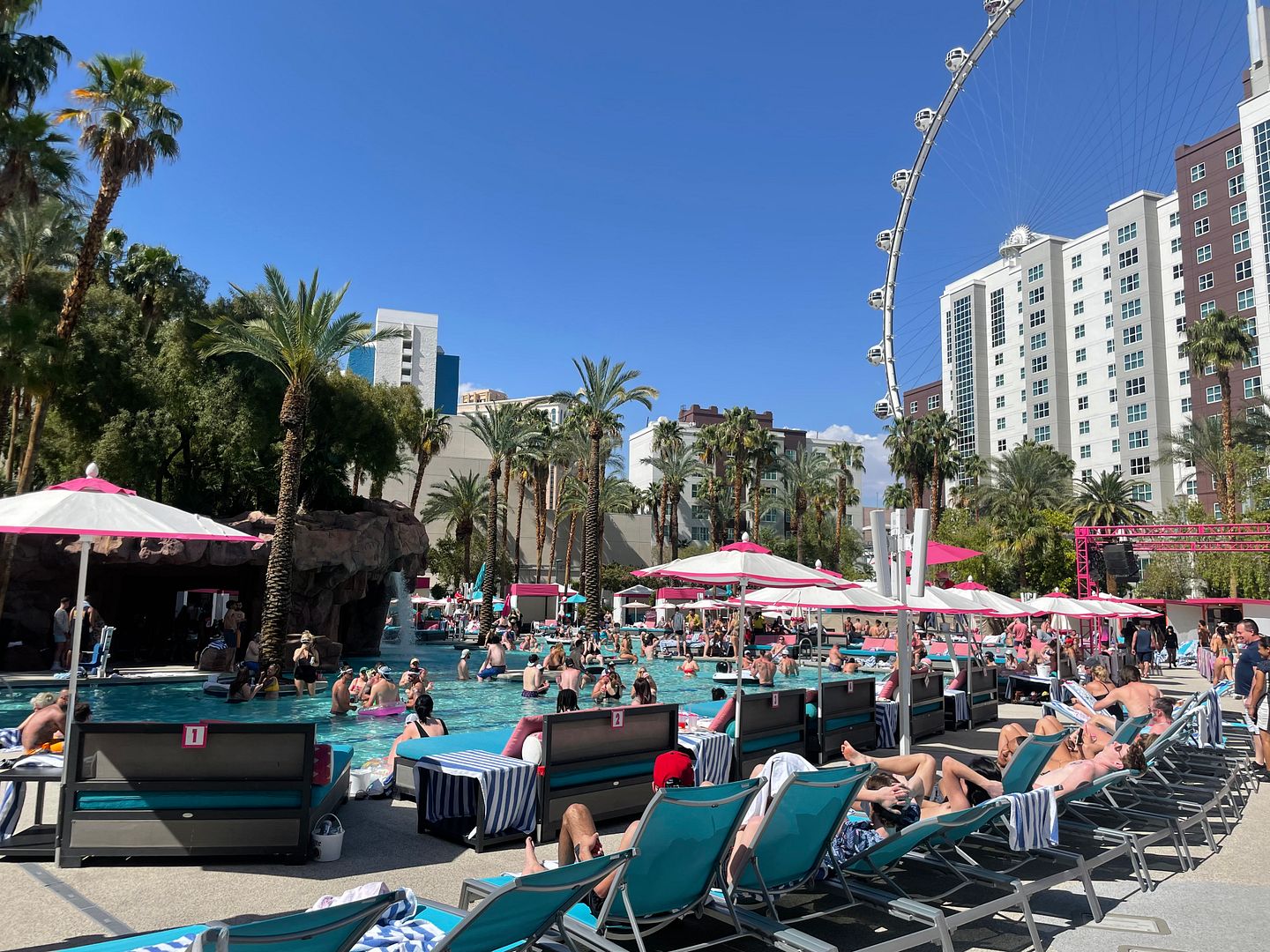 Quite the pool at the Flamingo.....to get a lounge chair was $75 plus a $150 bar/food tab....we sat on our towels...lol