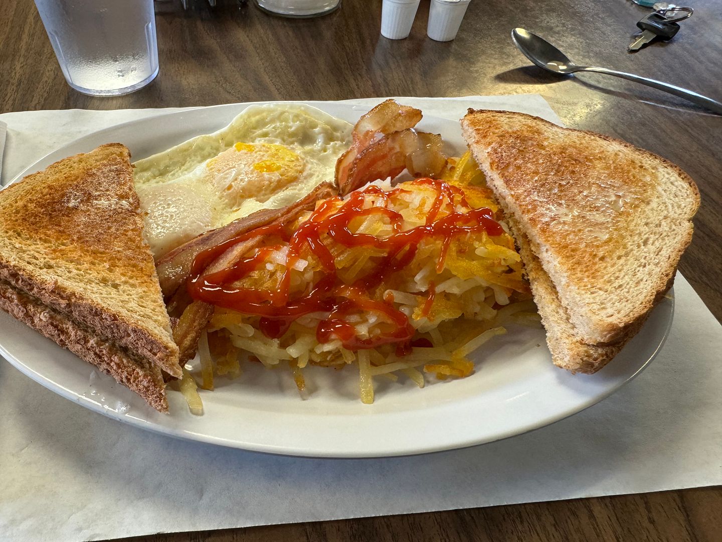 Breakfast in Wakefield Mi at the Korner Kitchen....I love finding place like this. two eggs, bacon, hashbrowns and toast...$7....love it