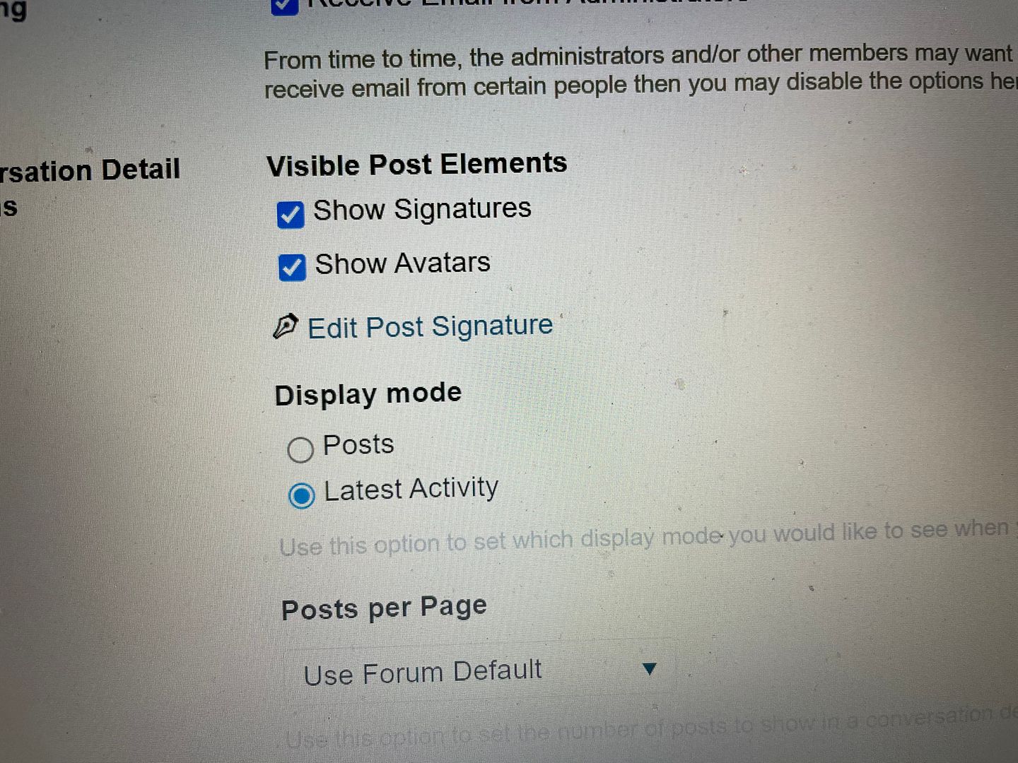 Hi all...on my screen the forum names no longer have where the person is from, their post count or their site supporter status. I have checked what I think are the boxes needed to show them...help please, thanks