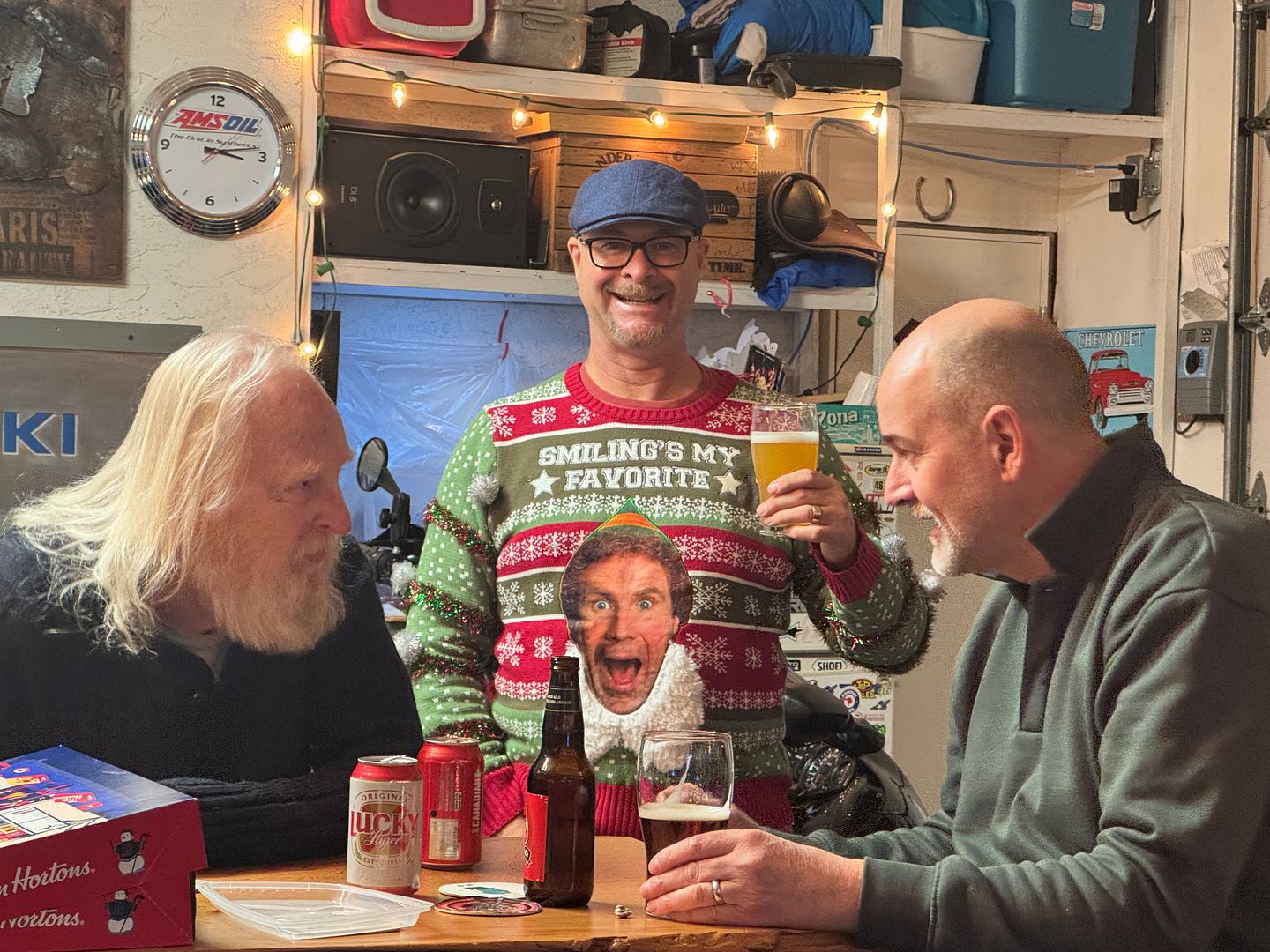 Friday afternoon safety meetings are going strong....Friday Dec 5th was my 60th birthday....my wife surprised me by flying my sister out from Ontario...and highschool buddies Chuck from Banff and Gary from Revelstoke flew out to...and another guy from my youth took the ferry over from Vancouver....must have around 40 people.....
