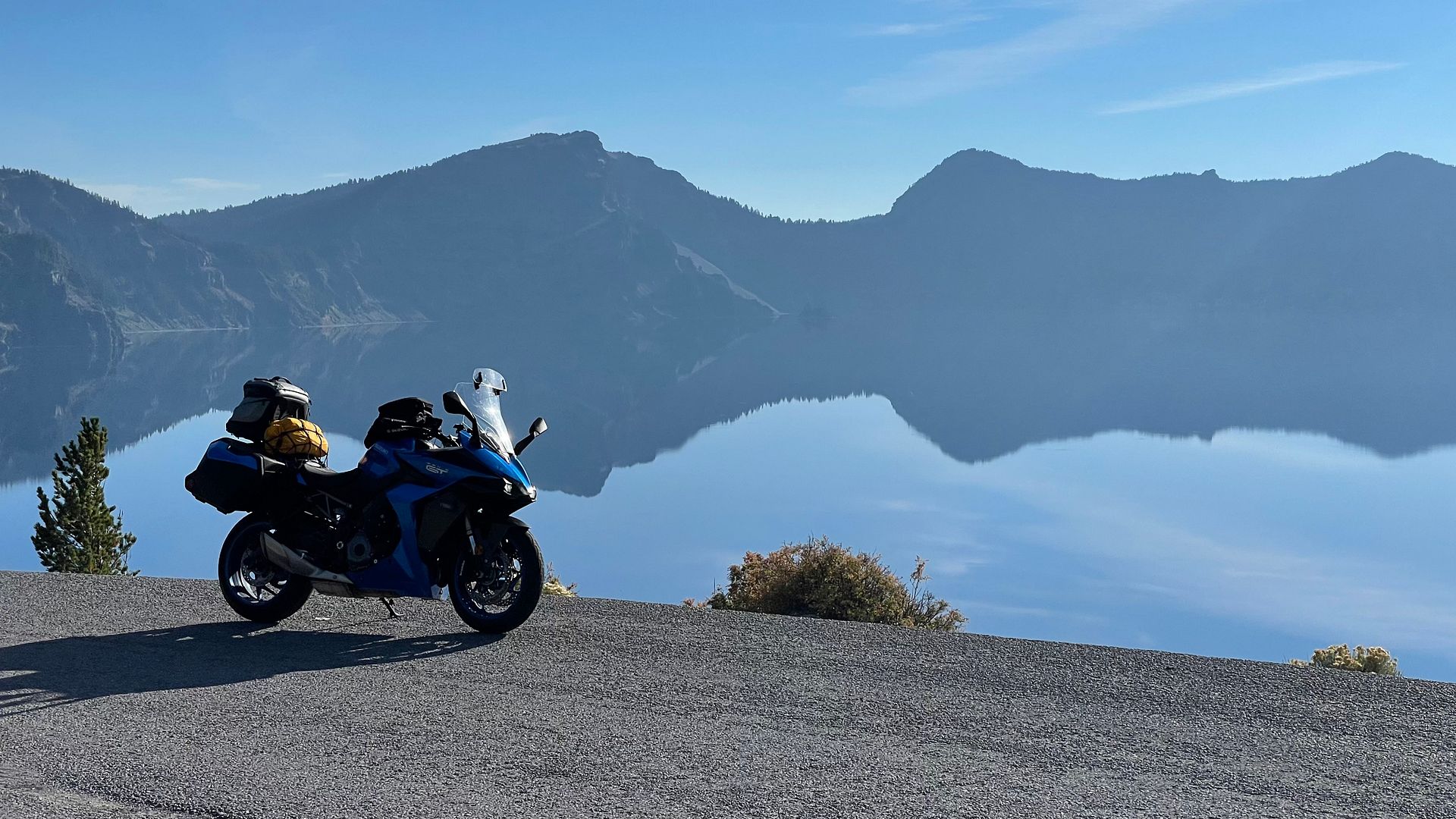 I'll vote for Mr Bob Baatfam. I like the vintage sign and general pose of bike with view down the road.