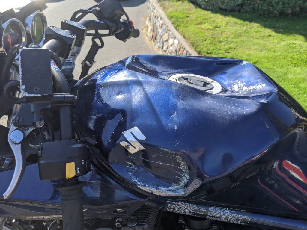 Can see end of sidestand scratch there before going off the road. That is where I got myself thrown down.