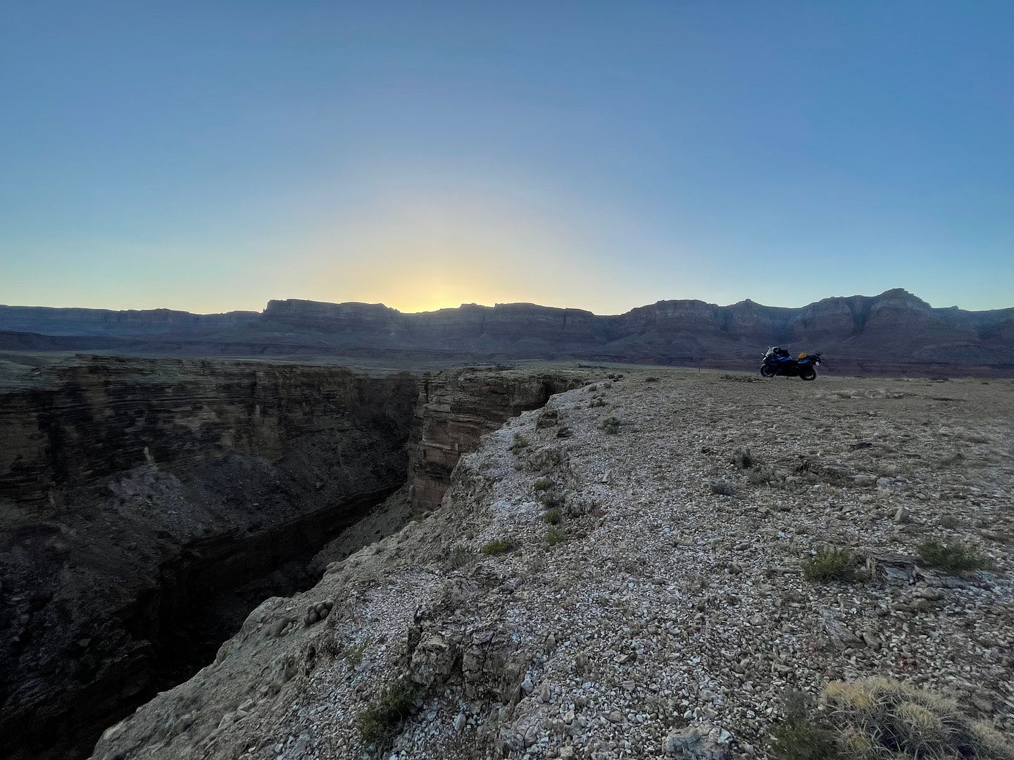 Tough choice. Trevor's, Burque73's (Roger's), Dorkburger's (Glen's), Kiwi's (Darryl's), and Jedz123 (Justin's) pics, all beautiful images. But the scale of Trevor's bike against the size of the chasm give him the edge. Voting for Trevor.