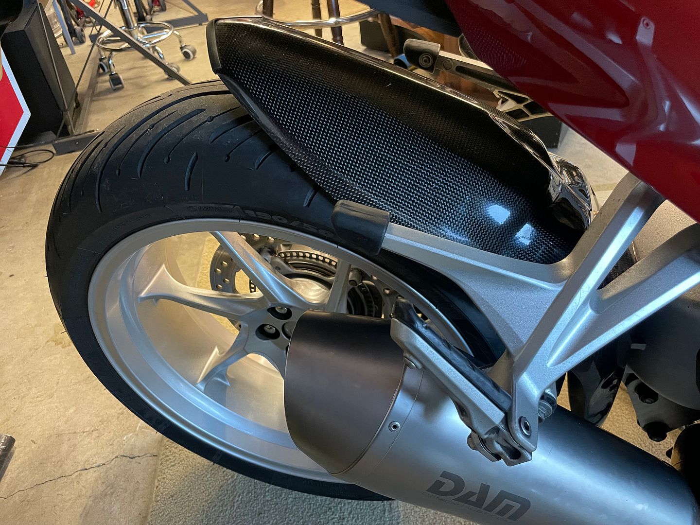 Reinstalled the carbin fibre rear hugger...it was crooked when I got it.