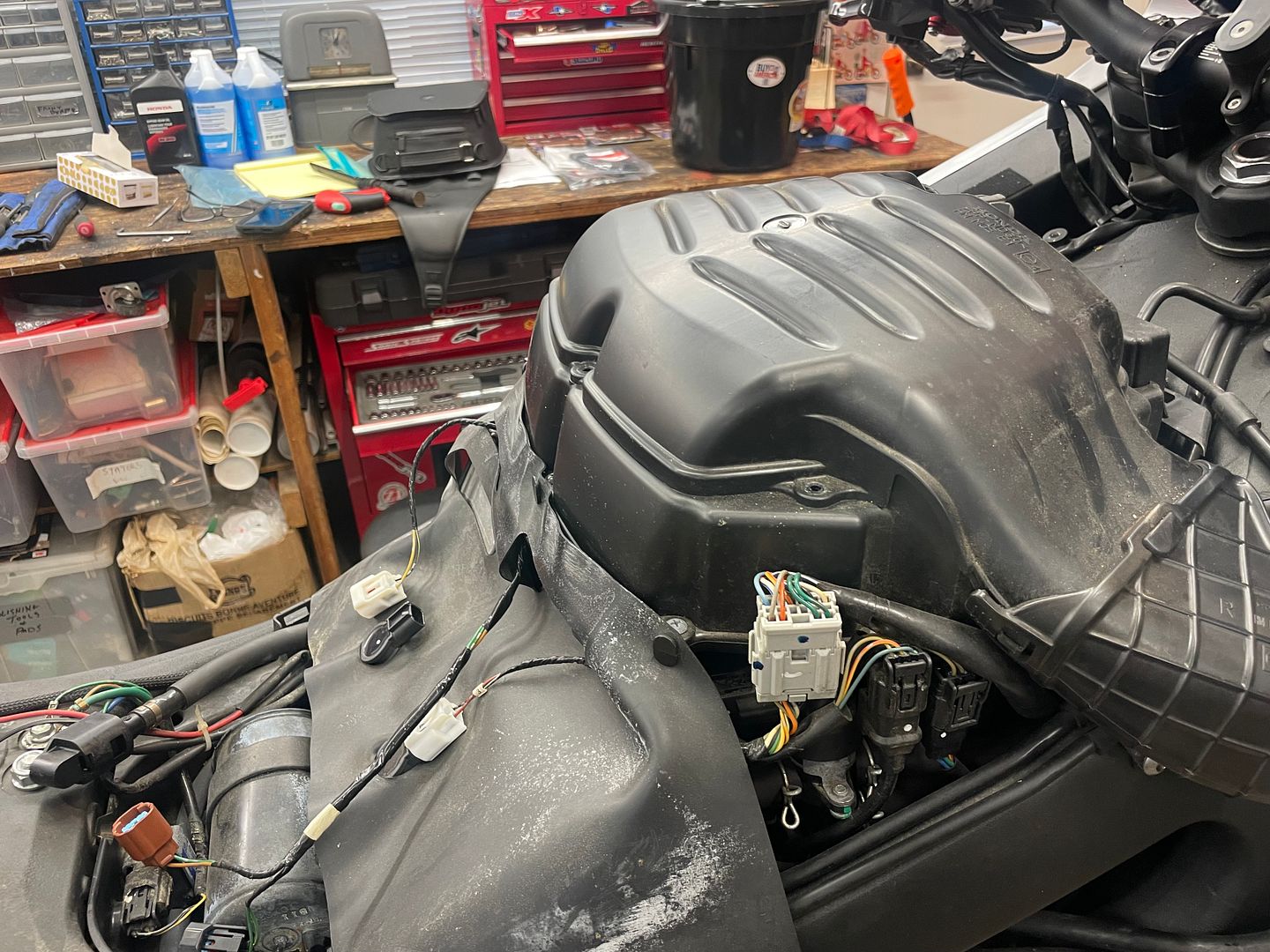 Decided to do a valve inspection (dealer wanted $2500 just to do the valve inspection),,,Honda says to be done at 28,000kms and mine on has 23,000kms but I wanted a baseline on this bike...as thought the valves were in spec...moved a couple to get them in the middle of spec....wow what a job and thankfully I had a good friend that I trust help me....