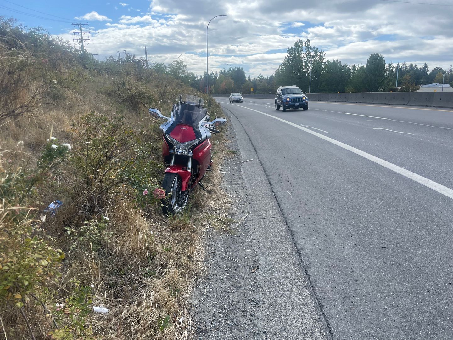 So I get home the following Monday from my trip and Tuesday I take the vfr out again...ran some errands in town and on the way home on the highway my bike starts to act like I'm treading water again...I struggle to get it off the highway to the ditch where I can't believe I didn't drop it.