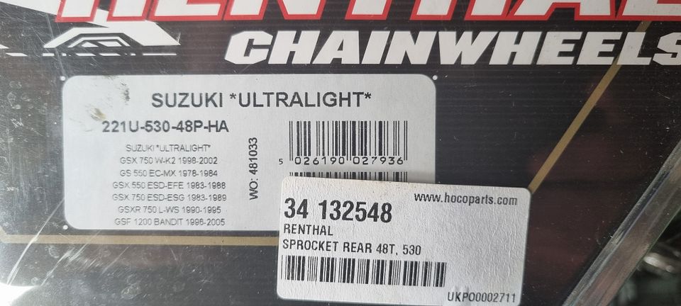 I ended up getting a DID 530Vx3 and Sunstar sprokets.. my old sproket was black and or greasy enough to look black but wondering if I should powdercoat the rear sproket. Stock wheel but I am fitting a gs11 box swinger which btw doesn't fit between the passenger peg frame hoops1979 gs1000e (everyday) 1977 gs750 for sale