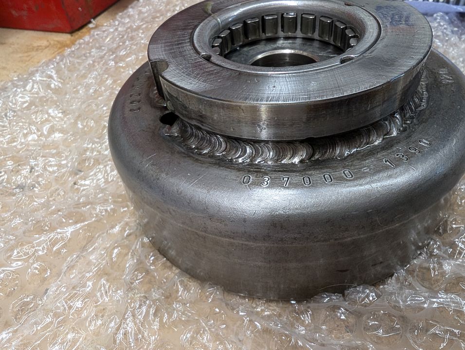 This is taken from his eBay listing "Suzuki GS series uprated and modified starter clutch bearing assembly arrangement. I've been working on this upgrade for many months, exclusive and only available from Centurion Motorcycle Projects. This new modified bearing assembly will eliminate for good the dreaded issues found with the OEM 3 barrel roller type bearing. Our process involves turning down this ring gear as there is always wear to a tolerance suitable for our custom sized bearing. The bearing has been designed and manufactured by us for the mounting of the new 20 point contact one way bearing, this is where the major improvement is over the old 3 point contact design. Our bearing is a weld on type eliminating the old 3 bolt fixing that were prone for becoming loose".