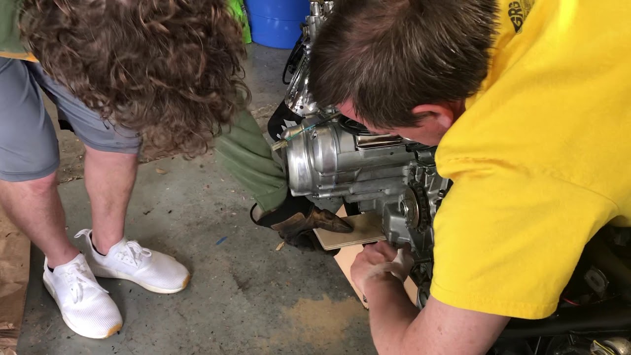 Here are a couple of videos of the engine install. Did scratch the new frame paint a bit. Should have tried to protect it. Oh well, live and learn. I’ve learned so much about this bike in the last 4 weeks. Never took and engine apart past the valve cover before. Never honed a cylinder before. Carb install seems to get easier every time you do it. But no matter how many times I’ve take the exhaust on and off, it’s always a PITA. Using The floor jack to lift the exhaust into place, I actually lifted and dumped the bike over onto the floor, luckily nothing damaged.
