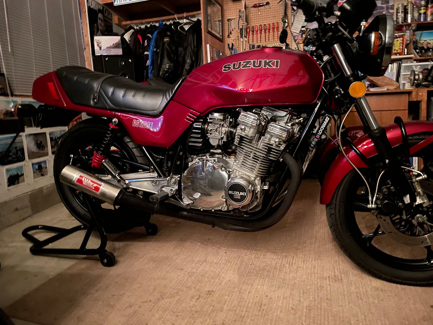 I, too, love black wheels on these old Suzukis. It was one of the first things I decided on when I did my own Cooley. It looks great on that bike. They contrast so nice with the other black pieces.1979 GS1000S,