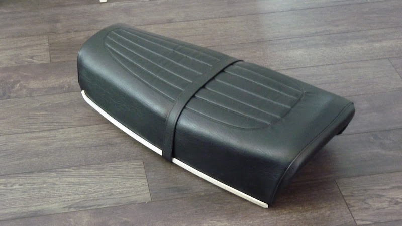 Here is my -78 GS750 seat with pit-replica cover. It is fine, though not great in my opinion. Some slight wrinkling on the top. Hopefully it settles with time.