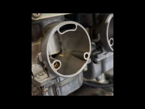 The bike has Mikuni BS32SS carburetors, aftermarket electronic ignition, and I just verified that the timing is good. The bike is at sea level now; I have tried stock jets (115 main and 40 pilot), 117.5/42.5 and 120/45 jet combinations with all mixture screw adjustment settings, but it still ran poorly under load. I’m presently running 117.5/42.5 and it idles well but bogs with throttle and generally runs much worse. We noticed that with throttle, the slides jiggle up and down rapidly and don’t open uniformly. Often they drop back down to the closed position even when throttle is applied. It seems like this is a likely culprit for the lean performance above idle, but I cant figure out the cause.