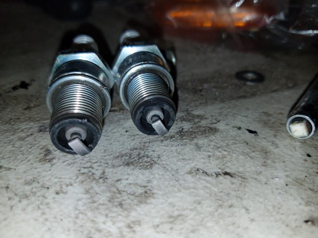 I've got a wideband O2 sensor on my bike and thought this would be some fun information to share. I cleaned some plugs, then set out on a 30 mile ride or so. Mostly cruising between 50-75 with 1 or 2 full throttle runs through 2nd and 3rd gear. My O2 was reading around 13.5:1 in cruise and about 12.0:1 at full throttle. After a lot of playing around I think these are pretty close to ideal numbers given my setup and riding conditions. I'll attach a picture so you can see what these ratios correspond to in plug color. I only happened to snap a pic of cylinders 2-3, but the others look pretty much the same.