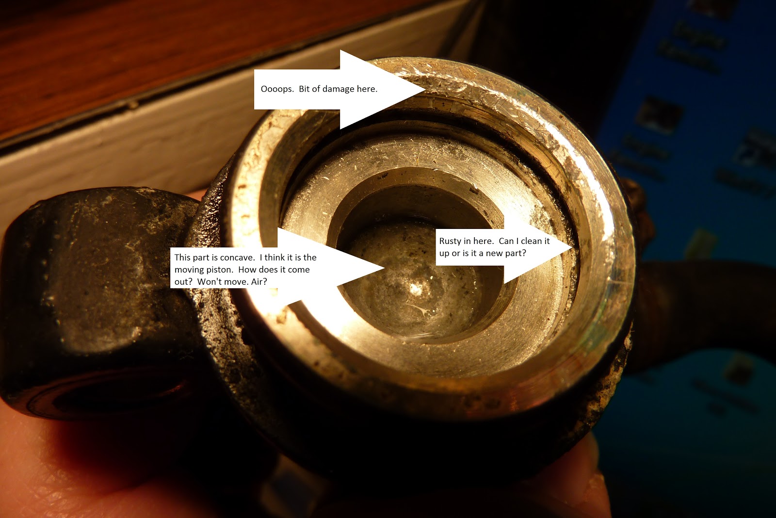Can't get the rear brake cylinder piston to come out. Looking on the parts fiche I am sure it comes out (has to) but does it have a thread?