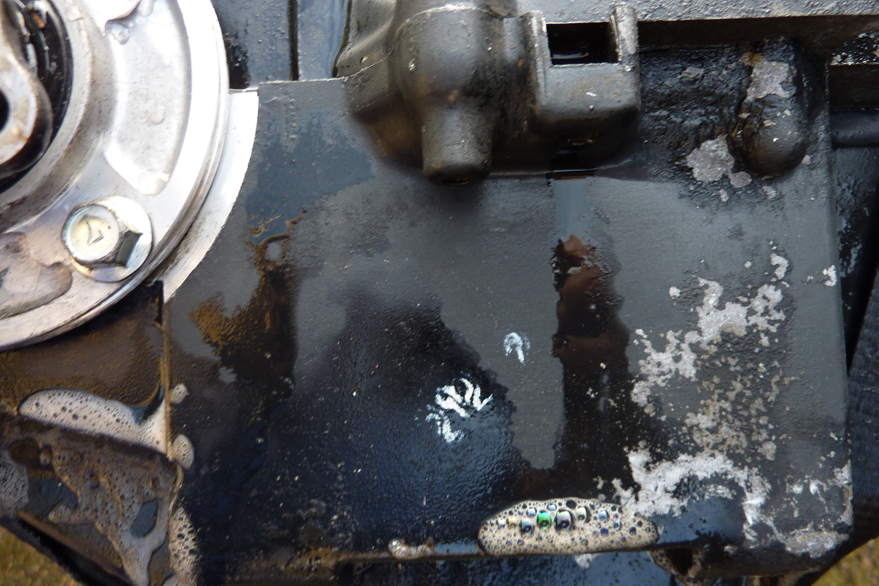 First I have to work out a place to do it in the garden. This alone required moving a ton of stuff. Then I had to work out an idea to get the engine off the ground and be able to reach the bottom. Then the actuall cleaning took a good long time and hey it's only 3 degrees C here (37F) with a windchill as well. I've now got back ache!
