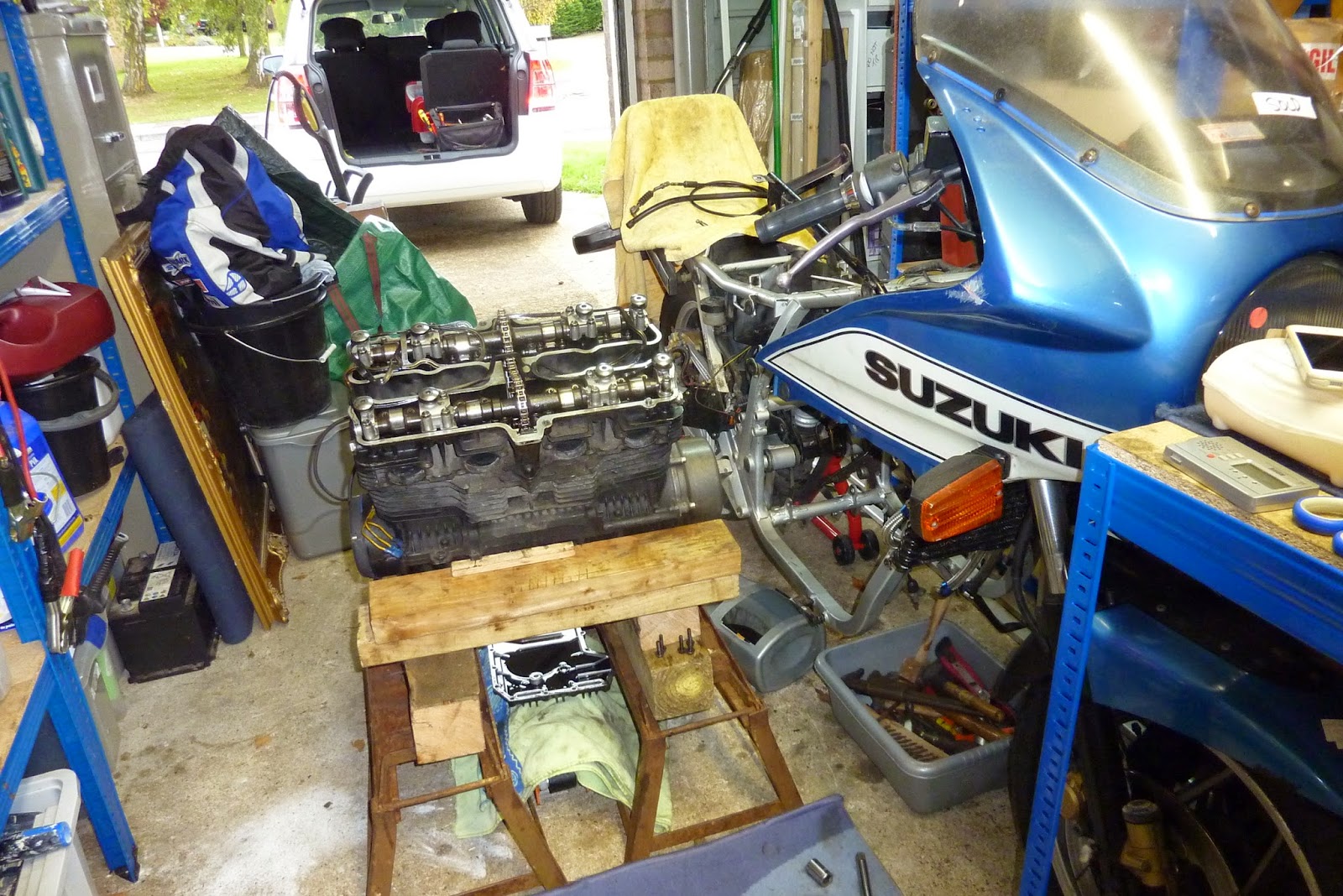 In the meantime, I took the old engine apart completely, ditched the head and sent the crank shaft away to be fixed. I found a local guy (only 60 miles from me) who has been reconditioning cranks (and particularly GS1150 / GSX1100 cranks) for the last 30 years. This is his workshop: