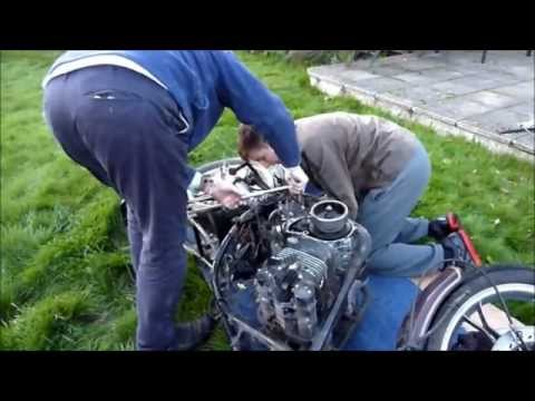I found another motor in Holland and after doing a little investigation into it, I decided to install it and see what it was like. So far it is in the frame but I need to work on wiring it up and putting the carbs on to see how it fares.