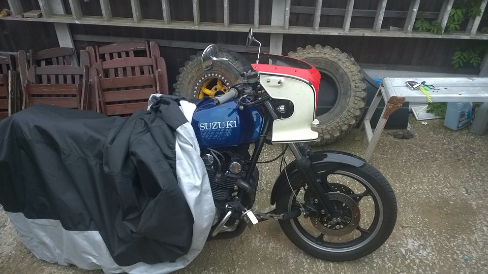 My bikes 79 GS1000 1085 checked and approved by stator the GSR mascot :eagerness: and 77 GS750 with 850 top end, GS850g, and my eldest sons 78 GS550, youngest sons GS125. Project bike 79 GS1000N