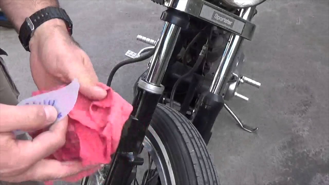 Put the bike up on the centerstand. Now, inspect the leading edge of the upper fork leg very carefully. Do you see any nicks or dings? If you do, take some extra fine steel wool and lightly buff those dings. Don't need to make them disappear, just knock the rough edges off.